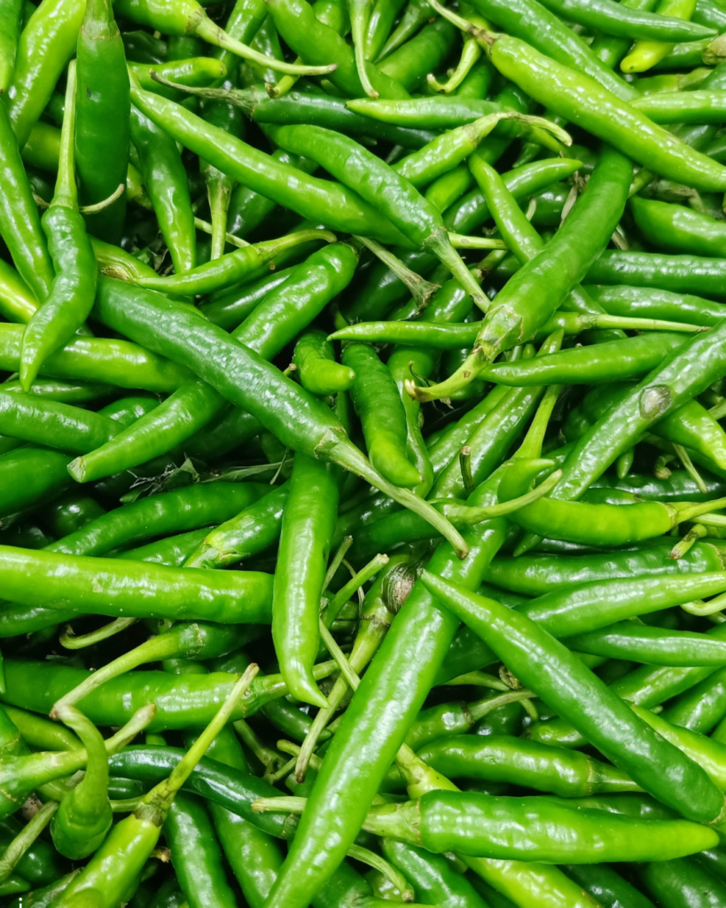 Our green chillies are harvested at the right stage of maturity to maintain their natural pungency, crisp texture, and bright green appearance. They are rich in vitamins A, C, and antioxidants, making them not only flavorful but also nutritionally beneficial. Green chillies are commonly used in cooking, pickling, sauces, food processing, and spice blends across domestic and international cuisines.